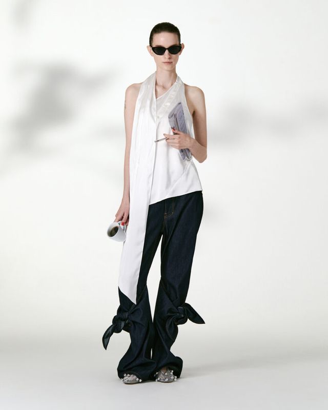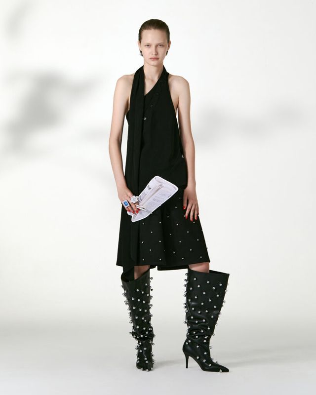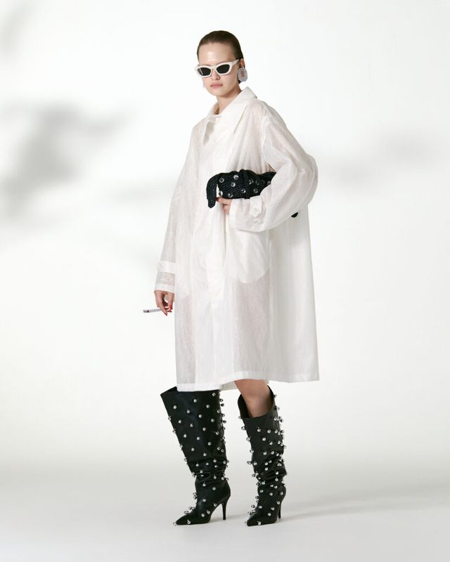 있는 어릴 적 엄마의 방을 떠올리며 컬렉션을 전개했다. 그 때문일까? 시퀸의 컬러, 펄의 배치, 플라워 패턴 레이스, 드레이핑 등에 레트로 감성이 짙게 깃들어 있다. 어린 시절 엄마를 흉내 내고 싶은 마음에 간절히 원했던 휴대폰, 이어링, 하이힐, 칵테일 잔을 가짜로 만들어 들고 있는 것도 이 컬렉션의 재미 중 하나다.