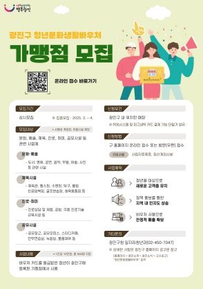 가맹점 등록 신청은 구 홈페이지 온라인 접수 또는 우편‧방문 접수로 가능하며, 자세한 사항은 광진구청 일자리청년과로 문의하면 된다.