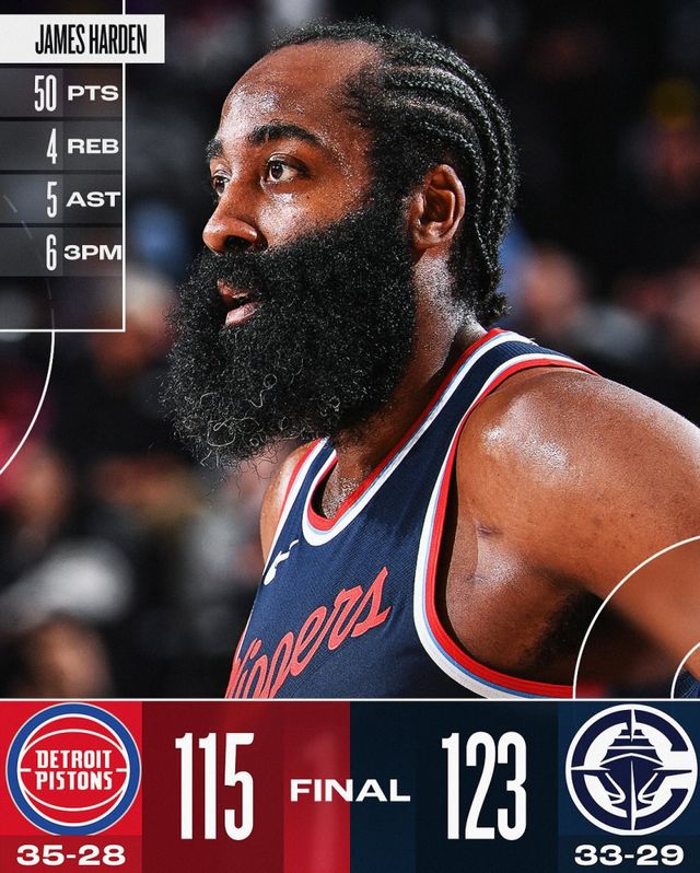 디트로이트의 돌풍을 막아선 게 바로 하든이다. 하든은 이날 1쿼터에만 23점을 올리는 등 남다른 손끝을 과시했다. 그는 최종 50점 4리바운드 5어시스트 1블록을 기록하며 전성기 시절 퍼포먼스를 재연했다. 특히 무려 20개의 자유투(16점)를 시도하는 등 적극적인 공격이 돋보였다. 보그단 보그다노비치(23점) 이비차 주바츠(22점 11리바운드) 등 프런트코트도 하든을 지원사격했다.