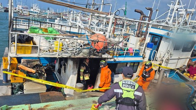 해경은 "갑판과 육상에서 그물 작업 중에 화재를 발견했다"는 선원 진술을 토대로 정확한 화재 원인을 조사하고 있다.