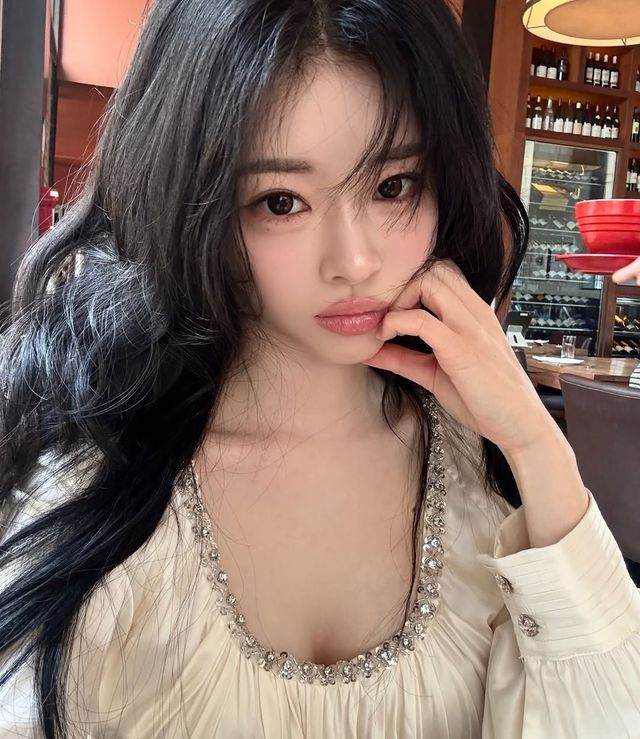 유혜원은 비즈로 장식된 크림톤의 상의를 입고 카메라를 응시하는 모습이다. 이에 유혜원의 뽀얀 피부와 작은 얼굴과 예쁜 이목구비가 부각되며 아름다움에 감탄을 더한다.