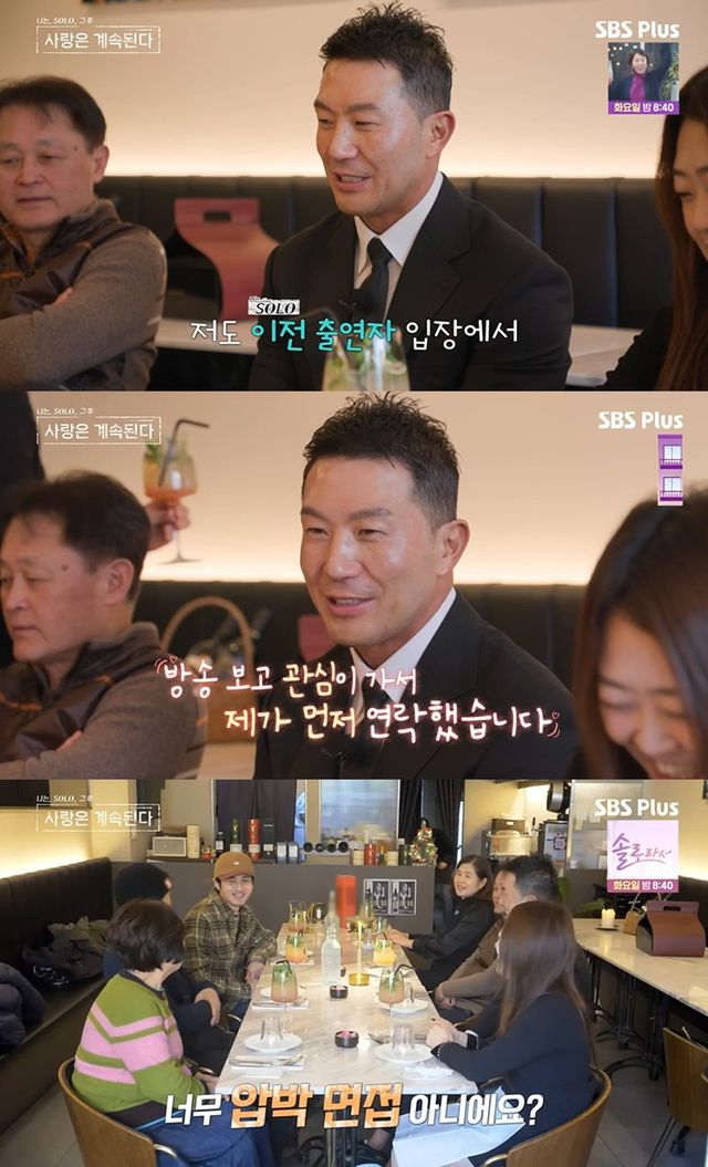 이를 들은 22기 정숙의 사촌동생은 "너무 압박면접 아니냐"고 물으며 분위기를 풀었고, 이들은 조금 더 편해진 분위기 속에서 식사를 하며 이야기를 주고 받았다.