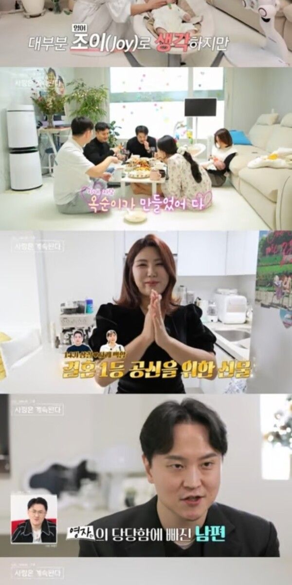 10기 상철과 22기 정숙의 로맨스에 이어 이번엔 15기 옥순-광수의 결혼 생활이 공개됐다. 새로운 신혼집에서 생후 79일이 된 딸 조이를 키우고 있는 15기 옥순은 여동생의 도움으로 수월하게 아이를 돌봤다. 그러던 중 15기 광수가 귀가해 세 사람은 '옥순표 집밥'으로 저녁식사를 즐겼다. 식사 후, 15기 광수는 '육아 출근'을 해 딸을 도맡았다. 딸의 기저귀를 갈아주고 목욕까지 시킨 15기 광수는 "삶의 또 다른 낙이 하나 생긴 기분"이라며 행복해했다. 15기 옥순 역시 "아기를 별로 안 좋아해서 '딩크'에 가까웠는데 생각보다 너무 좋다"며 웃었다.