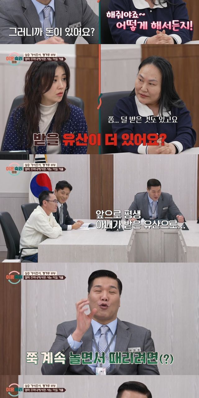 이에 캥거루 아내는 "(집) 해줘야죠. 어떻게든. 또 돈이 나올 것도 있다. (유산을) 덜 받은 것도 있다"라고 답해 남편의 분노를 유발했다.