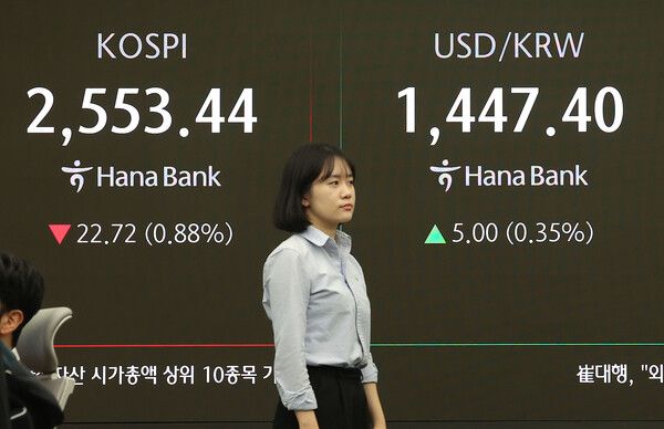 지수는 전장보다 22.72p(0.88%) 내린 2553.44로 출발해 하락세를 이어가고 있다.