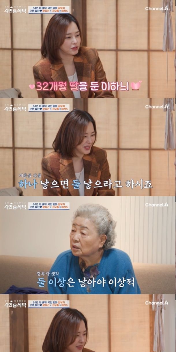 강부자가 "요즘 아이가 막 뛰니?"라고 묻자 "이제 막 뛴다. 축구도 하고"라며 32개월 된 딸의 근황을 들려줬다.