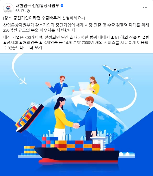 정부가 강소·중견기업의 수출 경쟁력 강화를 위해 300개 기업을 선정해 250억원 규모의 수출바우처를 지원한다.