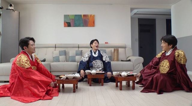 오랜만에 만난 세 사람은 곤룡포를 입고 모임을 즐기는 모습으로 웃음을 자아낸다. 이어 세 사람은 역대급 시청률을 기록했던 드라마 '대장금', '주몽'의 비하인드 스토리를 풀며 왕들답게 모임을 즐긴다.