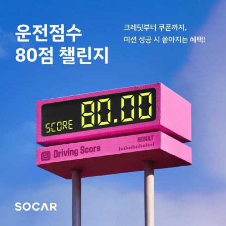 쏘카는 이번 챌린지를 통해 운전점수 80점 이상 달성한 회원들에게 쏘카 24시간 대여료 무료 쿠폰을 추첨해 증정한다. 운전점수 80점 이상을 달성한 회원 1000명당 100장의 쿠폰을 추첨, 운전점수 달성 인원에 비례해 지급하는 쿠폰 수도 최대 1000장까지 늘어난다.