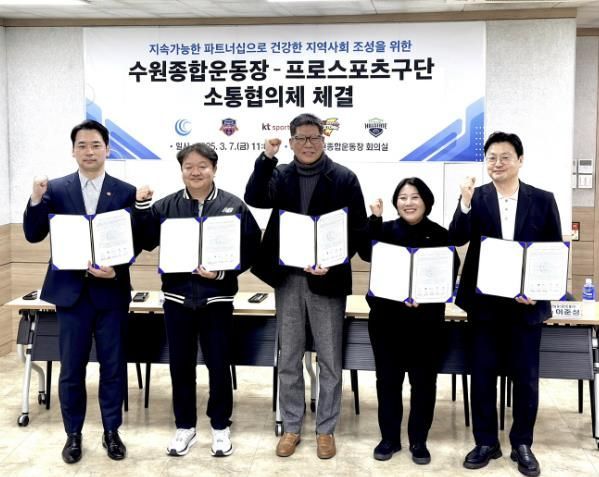 [와이뉴스] 수원도시공사가 수원특례시를 연고로 하는 프로스포츠 구단들과 지속가능한 파트너쉽을 통한 건강한 지역사회 조성을 위해 소통협의체를 구성했다고 7일 밝혔다.