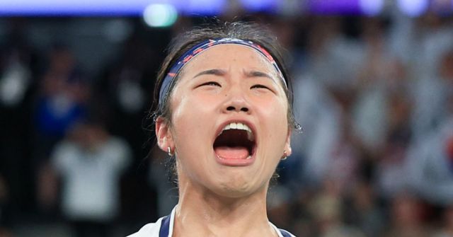 대한민국 배드민턴 대표팀 안세영이 지난해 8월 5일 오후(한국 시각) 프랑스 파리 라 샤펠 아레나에서 열린 2024 파리올림픽 배드민턴 여자 단식 결승 중국의 허빙자오 선수와의 경기에서 금메달을 확정 지은 후 기뻐하고 있다. / 뉴스1