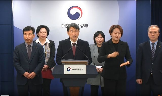 이주호 부총리 겸 교육부 장관이 의총협 회장단 양오봉 전북대 총장, 이해우 동아대 총장 그리고 이종태 의대협회 이사장과 7일 서울 종로구 정부서울청사에서 학생 복귀 및 의대교육 정상화 관련 브리핑을 하고 있다. e브리핑 캡처