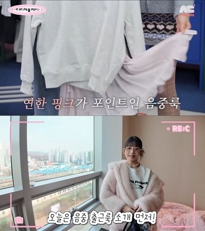 MBC ‘쇼! 음악중심’ 출근룩에 대해서는 “대기실이 넓기도 하고 조명이 좋아서 사진을 많이 찍는다. 그래서 예쁘게 입어야 한다”고 설명했다. 이번에는 바지를 선택한 레이는 티셔츠에 핑크색 원피스를 레이어드했다. 전체적으로 핑크로 포인트를 준 레이는 멀리서 보면 도트 패턴 같은 딸기 무늬 신발을 매치했다.