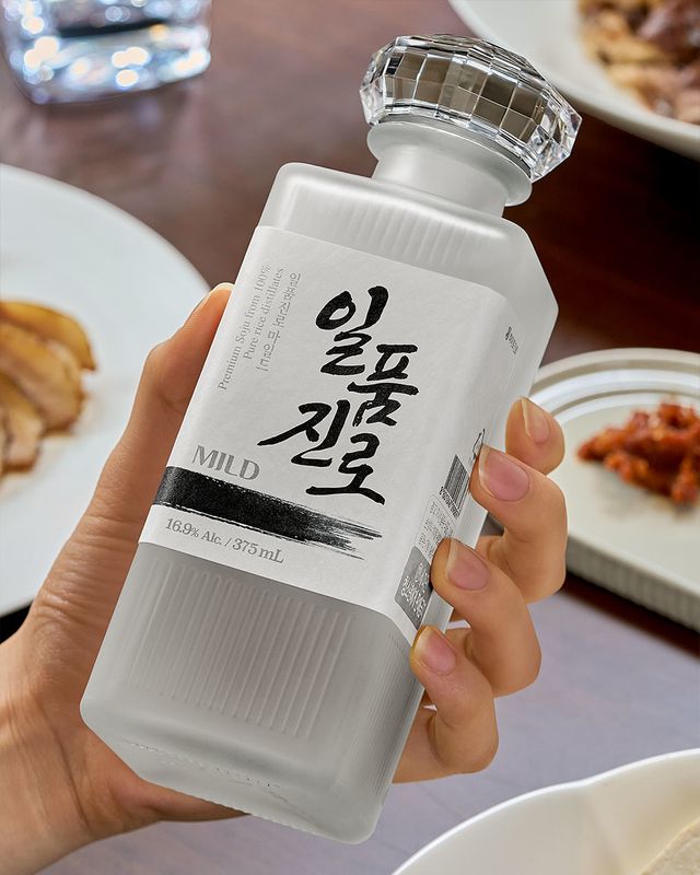 ‘일품진로 마일드’는 알코올 도수 16.9도의 증류식 소주로, 일품진로의 깊이 있는 풍미는 그대로 유지하면서도 가장 부드러운 맛을 구현해 낸 것이 특징이다. 100% 국내산 쌀을 사용하여 첫술과 끝술은 버리고 향과 풍미가 뛰어난 중간 원액만을 사용했으며, 깔끔한 목넘김을 위해 영하의 온도에서 잡미 불순물을 제거했다고.