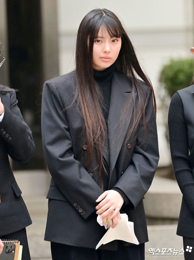 경비 역시 그 어느 때보다 삼엄했다. 뉴진스가 법원 입구로 들어서자 팬들이 웅성이기 시작했고, 멤버들은 모두 검은색 정장을 입고 다소 굳은 표정으로 재판장 안으로 이동했다.