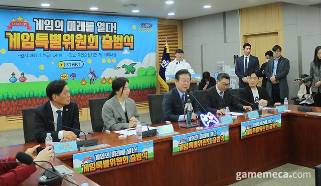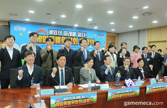더불어민주당 게임특별위원회는 7일 오후 2시 30분에 국회의원회관 제1세미나실에서 출범식을 가졌다. 현장에는 위원장을 맡은 강유정 의원, 황희두 이사를 비롯해 부위원장을 맡은 더불어민주당 조승래 수석대변인, 이재성 부산시당위원장, 한승용 CSO(PS애널리틱스, 프로관전러 채널), 동양대학교 김정태 교수, 이락디지털문화연구소 이장주 소장 등 부위원장 5명, 국회의원 및 민간 전문가로 구성된 위원 20인, 민간자문위원 35인으로 구성됐다.