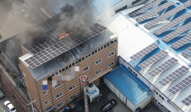 불은 건물 3층과 옥상 태양광 시설을 일부 태우고 오후 4시 8분께 꺼졌다.