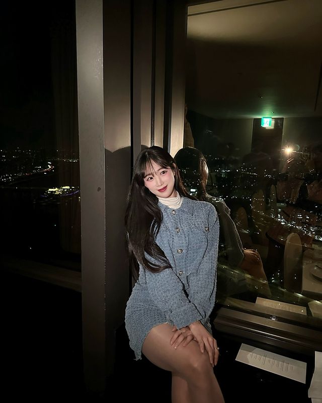 사진 속에는 서울의 야경을 배경으로 미모를 자랑하는 김한나의 모습이 담겨있다. 특히 그는 하늘 빛의 트위드 재킷과 짧은 스커트 셋업을 입고 있는 모습으로 그의 탄탄한 허벅지가 드러나 눈길을 끌었다.