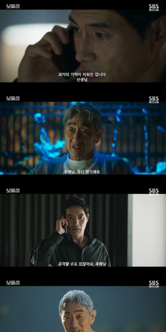 이에 염장선은 "후배님, 각별히 몸 조심해라. 서동주가 기억상실 쇼를 하다가, 갑자기 기억이 돌아와 공격할 수도 있지 않냐. 서동주한테 총을 쏜 사람은 후배님이잖아요"라고 말해 허일도를 긴장하게 했다.