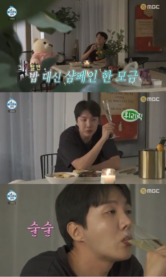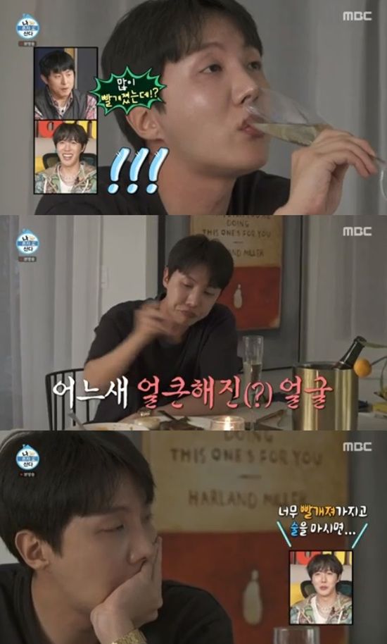 7일 방송된 MBC '나 혼자 산다'에서는 제이홉이 샴페인을 마시고 얼굴이 빨개지는 모습이 전파를 탔다.
