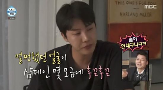 제이홉은 샴페인은 몇 모금 마시더니 얼굴이 빨개지기 시작했다. 기안84는 샴페인을 먹고 취한 제이홉을 보고 놀라며 "많이 빨개졌는데?"라고 놀랐다.