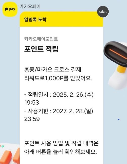해외 물가 적응이 되지 않아 현지돈을 다써버린 걸 모르고 커피를 사러 나갔는데 돈이 모자라다는 걸 깨달았다. 사실 카카오페이 결제가 홍콩에서 잘 된다는 이야기를 들었지만 사전에 사용을 미리 준비한 게 아니었기 때문에 잘 될 수 있을까 반신반의 하면서 카카오페이 앱을 열어봤다. 열자마자 바로 내가 홍콩인 걸 어찌 미리 알고 있었는지, 카카오페이 메인 화면에 알리페이 결제 모드로 자동 변환돼 있었다. 미리 준비하지 못해 우려했지만, 자연스럽게 알리페이로 결제 마무리가 돼 안심이었다.