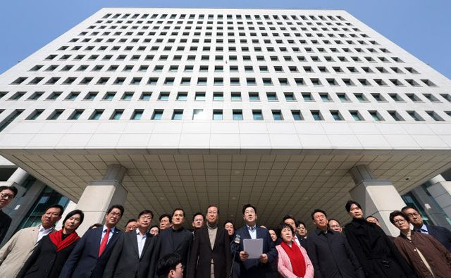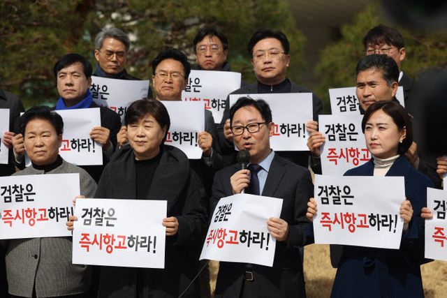 박찬대 민주당 원내대표를 비롯한 원대부대표단, 민주당 소속 국회 법제사법위원회 위원들 20여명은 “구속 취소는 내란 동조다. 즉시 항고하라” 등의 구호를 외치며 검찰에 법원 결정에 즉시항고할 것을 압박했다.