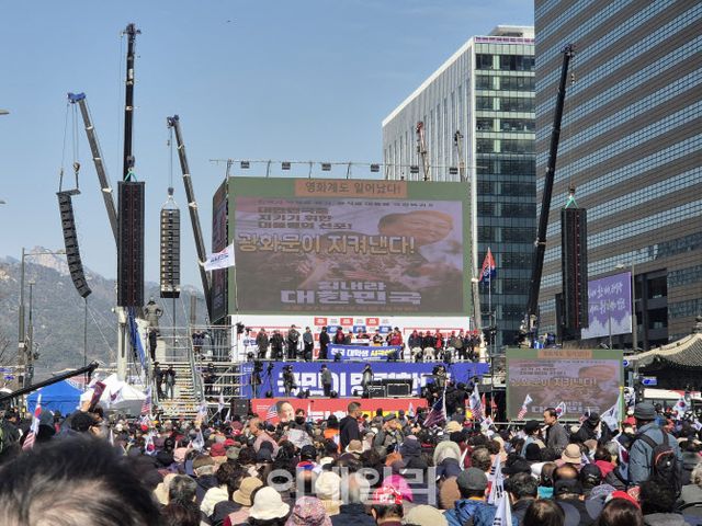 이데일리가 8일 오전 11시쯤 찾은 서울 종로구 광화문 동화면세점 앞에서는 태극기와 성조기를 함께 든 중년의 윤 대통령 지지자들로 북적였다. 이날 광화문에서는 오전부터 전광훈 사랑제일교회 목사가 이끄는 대한민국바로세우기국민운동본부(대국본)이 탄핵 반대 집회를 열었다.