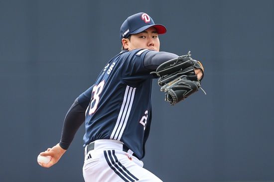 정우주는 오명진을 헛스윙 삼진으로 잡은 뒤 대타 김인태를 2루 땅볼로 유도해 첫 시범경기 등판을 실점 없이 매듭지었다.