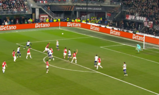 키커였던 매디슨이 손흥민에게 짧게 연결했다. 하지만 손흥민의 리턴 패스가 매디슨이 예상한 곳으로 가지 않았다. 두 선수의 호흡이 맞지 않으면서 알크마르 선수들이 순식간에 압박에 들어갔고, 손흥민은 부랴부랴 뒤로 내줬다. 이를 잡은 센터백 케빈 단소가 뒤늦게 박스 안으로 공을 띄워 보냈으나 공은 그대로 골라인 아웃됐다.