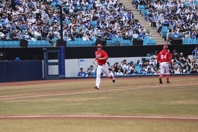 이지영은 첫 타석부터 힘차게 방망이를 휘둘렀다. 팀이 0-1로 끌려가던 3회초 1사에서 삼성 선발 최원태의 초구 투심을 통타, 왼쪽 담장을 넘어가는 솔로 아치를 그렸다. 올해 시범경기 1호 홈런이 터지는 순간이었다.