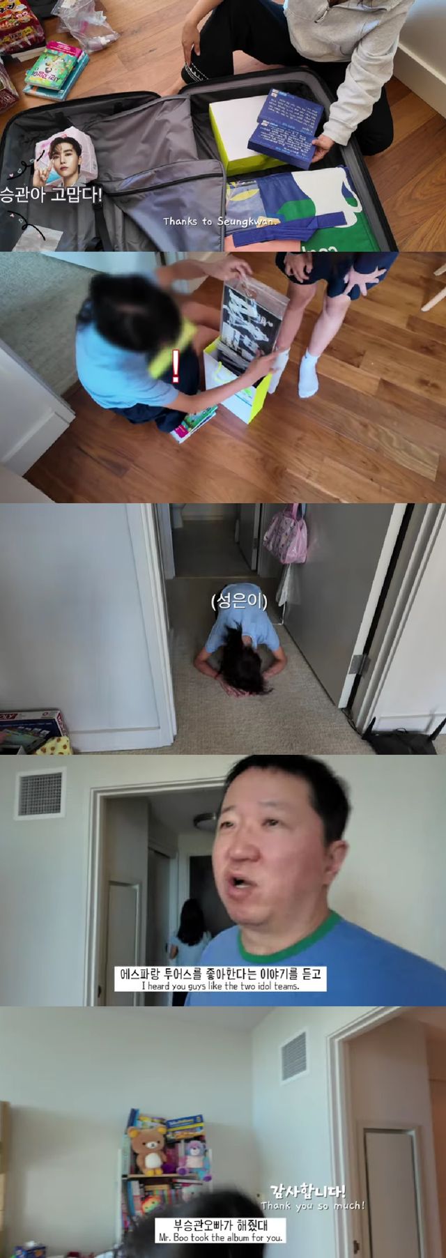 영상 말미에 한유라는 "(싸인 앨범) 부승관 오빠가 해줬대"라고 알렸고, 딸은 "감사하다. '청바지 좋아한다'"며 승관, 도겸, 호시의 부석순 곡을 언급했다.