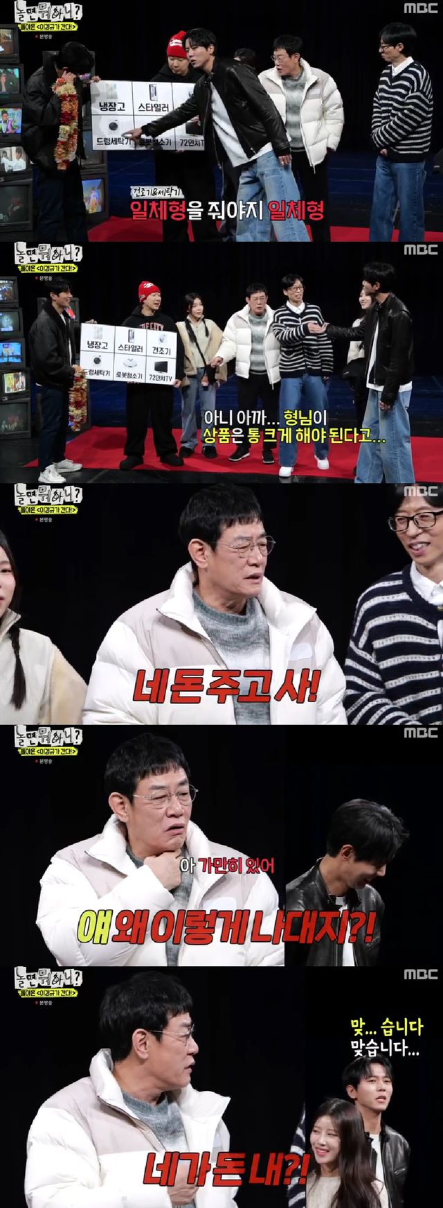 주우재는 "아까 상품은 통 크게 하라고 하셨다"며 억울해했고, 이경규는 "얘 왜 이렇게 나대지? 가만히 있어. 우리가 뭘 주든 간에 뭘 상관이냐. 네가 돈 내냐. 가만히 있으라"며 호통을 쳤다.