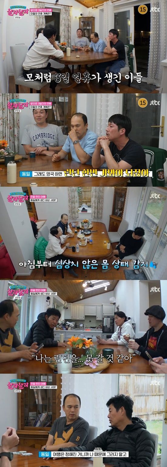 신승환이 "오늘은 그냥 함께 쉬시죠"라고 제안했지만, 성동일은 "여행은 정해진 거니까 나 때문에 그러지 말고, 이번 런던 여행은 너네 넷이 가는 게 맞을 거 같다. 내가 가봤자 괜히 방해만 된다"고 동생들을 런던으로 보내며 집에 남았다.