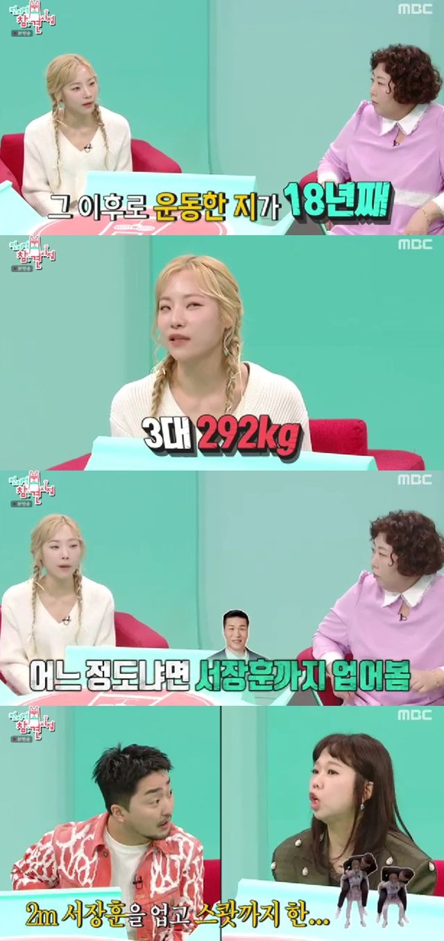 패널들이 신기루를 업어보자고 요청하자, 신기루는 "안 된다"고 만류했다. 홍현희가 "서장훈보다 더 나가냐"고 물었고, 신기루는 "더 나간다. 조용히 하고 있어라"고 답해 웃음을 자아냈다.
