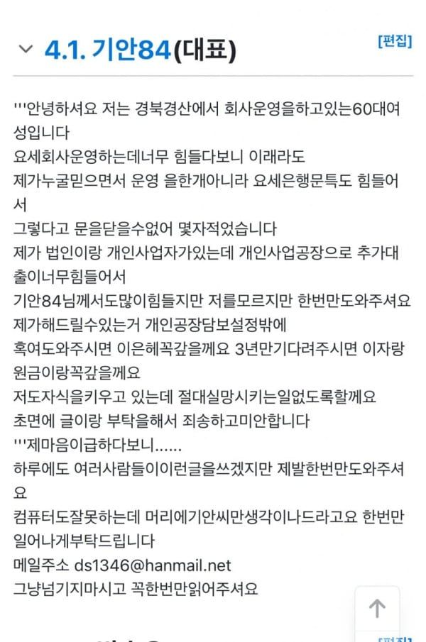 회사 대표란 수정해서 구걸함 ㄷㄷ