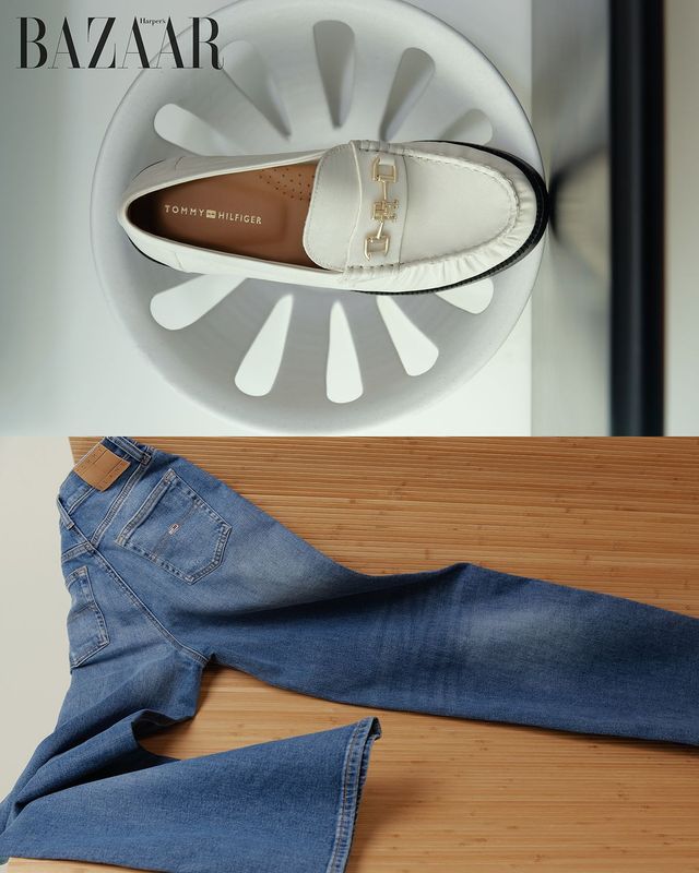 로퍼는 Tommy Hilfiger. 데님 팬츠는 Tommy Jeans.