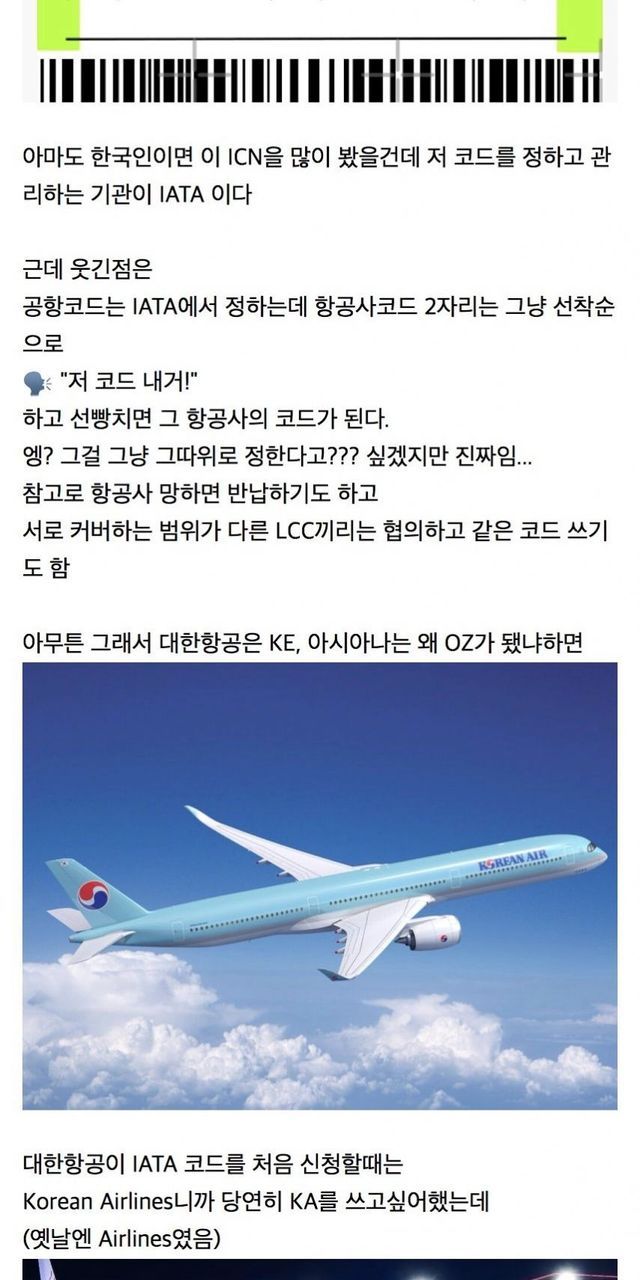 [스압] 대한항공은 왜 KE고 아시아나는 왜 뜬금없이 OZ일까.jpg,,