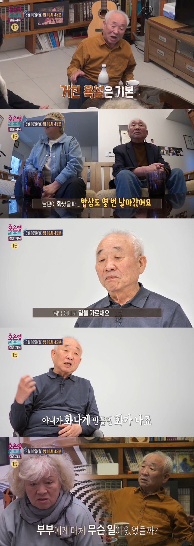 부부의 일상을 지켜보던 오은영 박사는 병원에 가지 않는 것을 포함해 아내의 일상 곳곳에서 ‘불안’과 ‘강박’이 보인다며 이 불안이 남편이 그토록 괴로워하는 아내가 말을 끊는 것, 나아가 이혼 후 남편과 같이 살면서도 혼인신고를 오랜 기간 반대했던 이유와도 연결되어 있다고 진단하는데. 20년 넘게 두 사람을 지긋지긋하게 괴롭히는 ‘욱’과 ‘말 끊기’는 오은영 박사와의 상담을 통해 해답을 찾을 수 있을까. ‘우재혼 부부’를 위한 오은영 박사의 힐링 리포트는 3월 10일 월요일 밤 10시 45분 ‘오은영 리포트 - 결혼 지옥’ 113회에서 만나볼 수 있다.