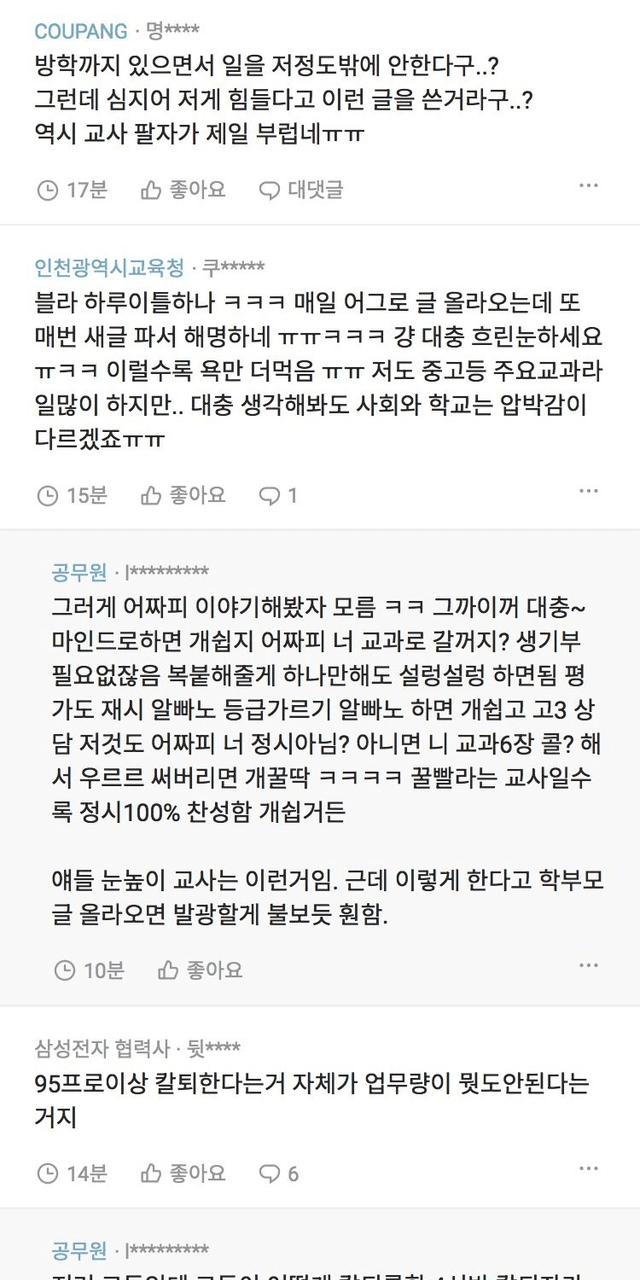 업무량 이정도인 줄 알았으면 안했을거라는 교사