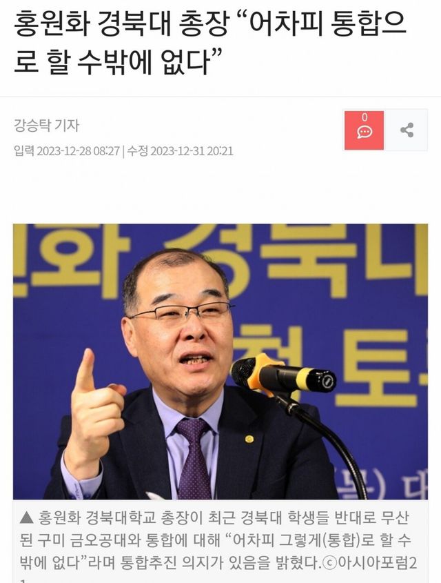 경북대 총장, 경북도지사는 적극 찬성하는 상황