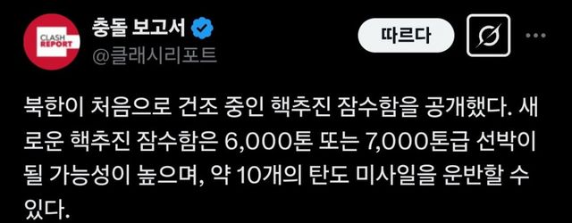 CNN 보도. 한국 전문가 발언 인용해서 6천톤 ~ 7천톤급으로 추정된다는 기사를 씀