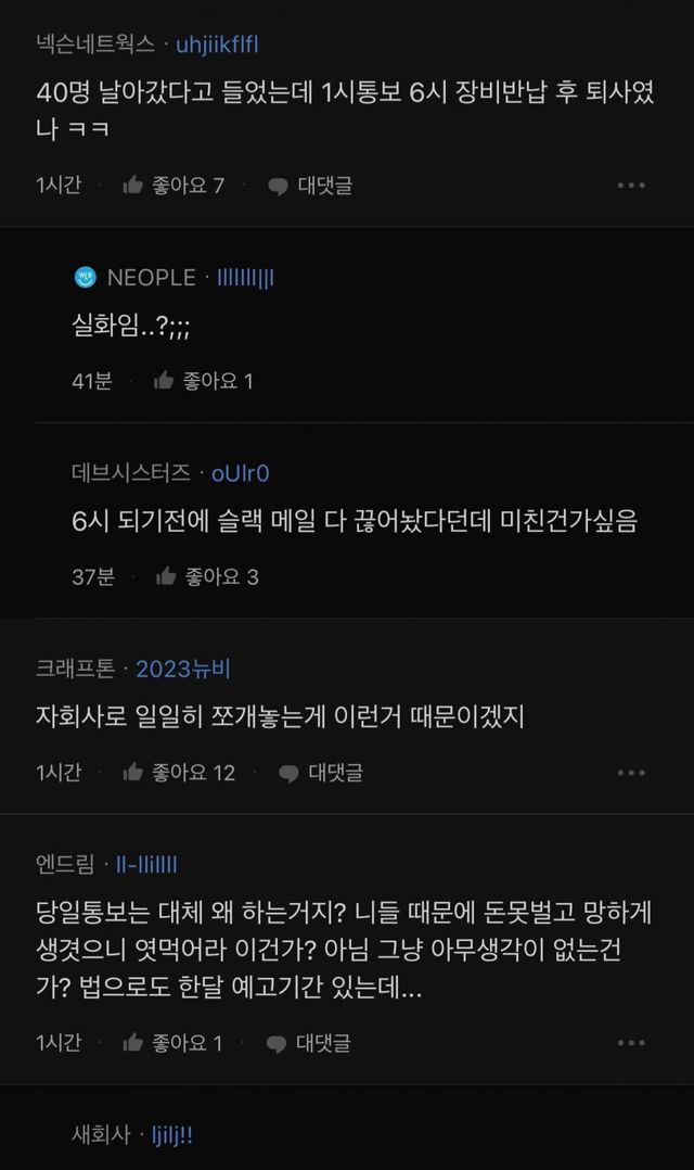 데브시스터즈란 회사에서 마이쿠키런에 소속된 회사원 40여명을 당일해고 통보해버림