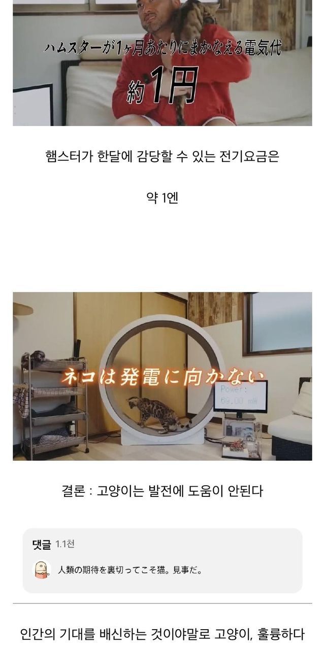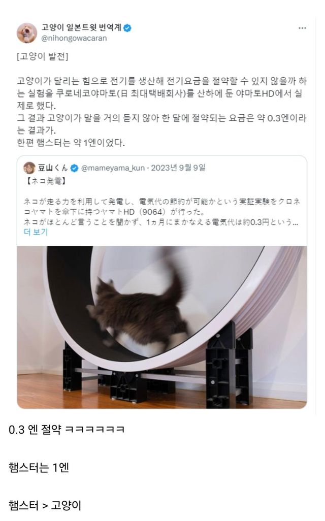 고양이 캣휠에 발전기를 달면 전기요금을 절약할 수 있을까?