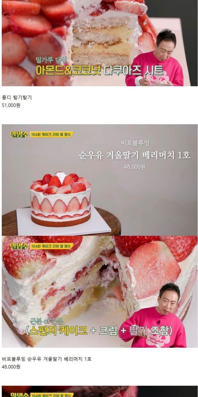 박명수가 리뷰한 딸기케이크 12종 가격
