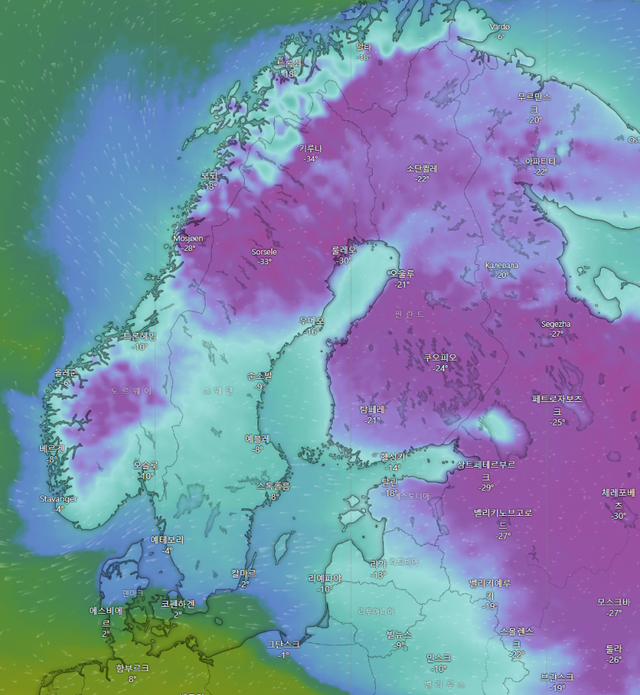 한파 북유럽, 발트3국, 러시아로 몰려감
