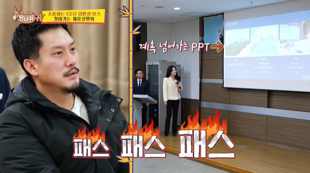 발표하고 있는 직원에게 노잼이라고 하네요..