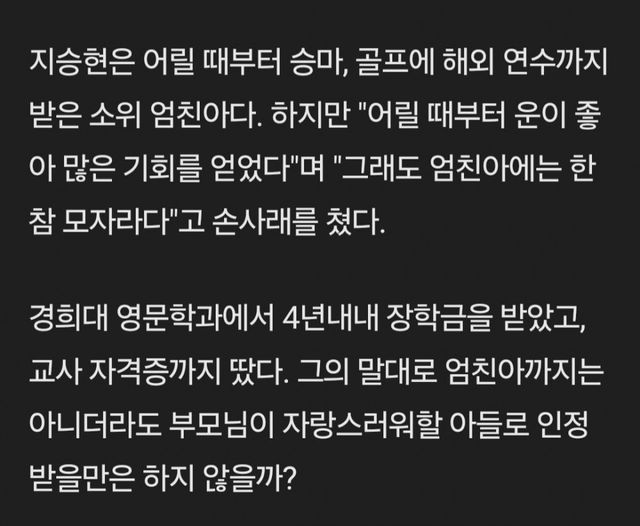 4년 장학생이라길래 학군단 장학금을 얘기하나 싶었는데 사범대가 아닌 문과대 영문과에서 교원 자격까지 취득한걸로 봐서는 성적 장학금 받은게 맞는거 같음
