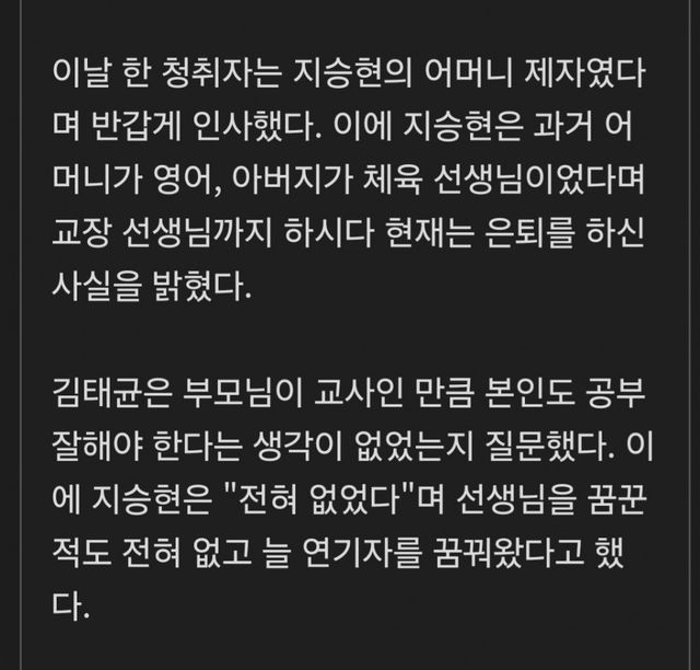 참고로 부모님은 두분다 교육자 출신이시라고함