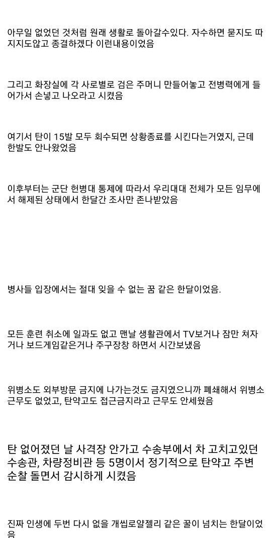군대에서 실탄 15발 없어져서 한달간 조사 받았던 썰